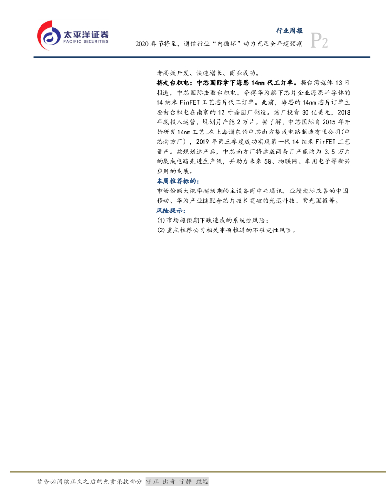太平洋证券:通信设备Ⅲ行业周报:2020春节将至,通信行业“内循环”动力充足全年超预期.pdf