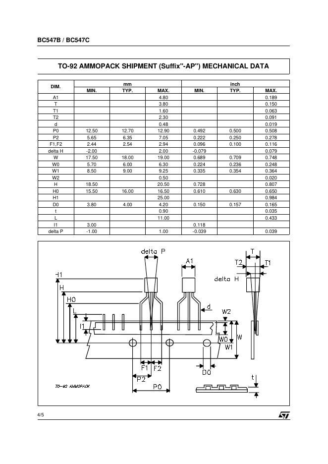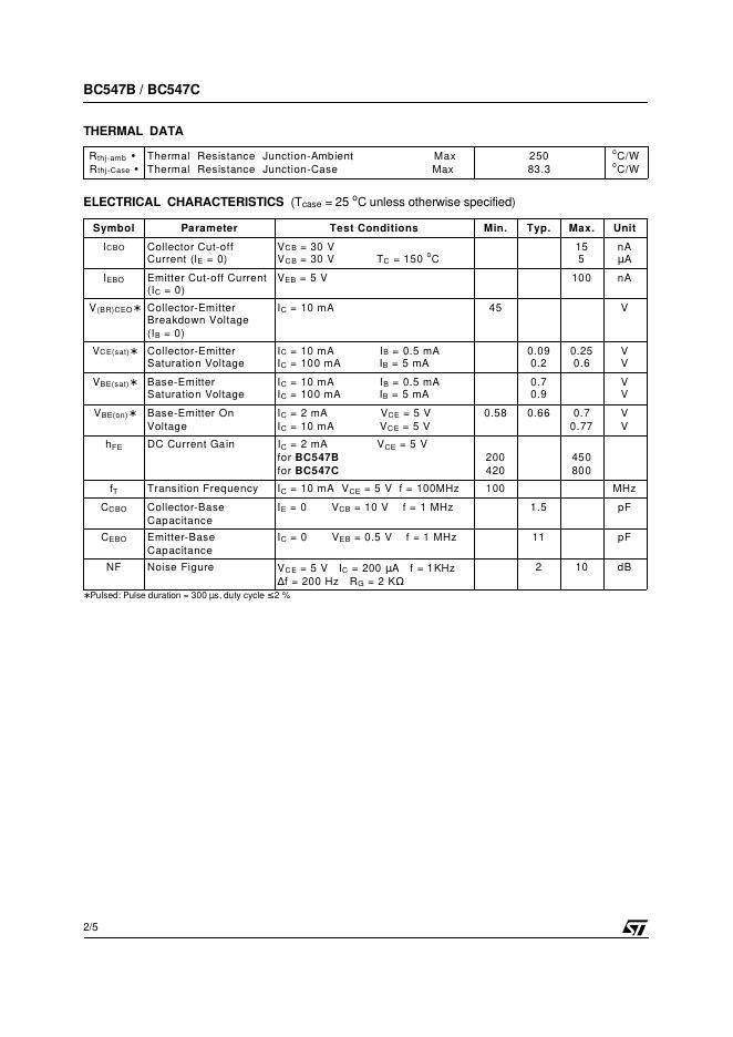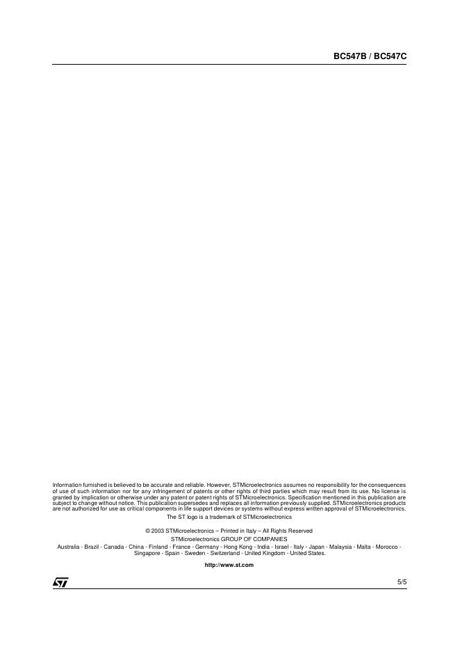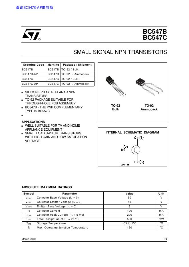 ST BC547B BC547C SMALL SIGNAL NPN TRANSISTORS 数据手册.pdf