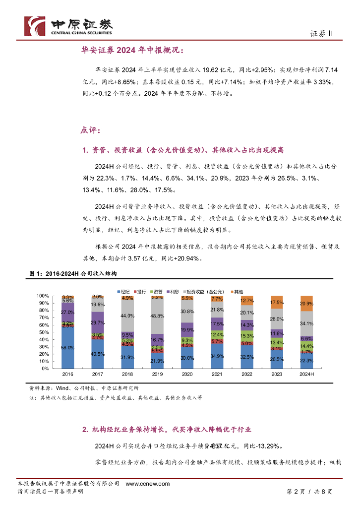 中原证券:华安证券(600909)-2024年中报点评:资管保持快速增长,自营实现较高投资收益.pdf