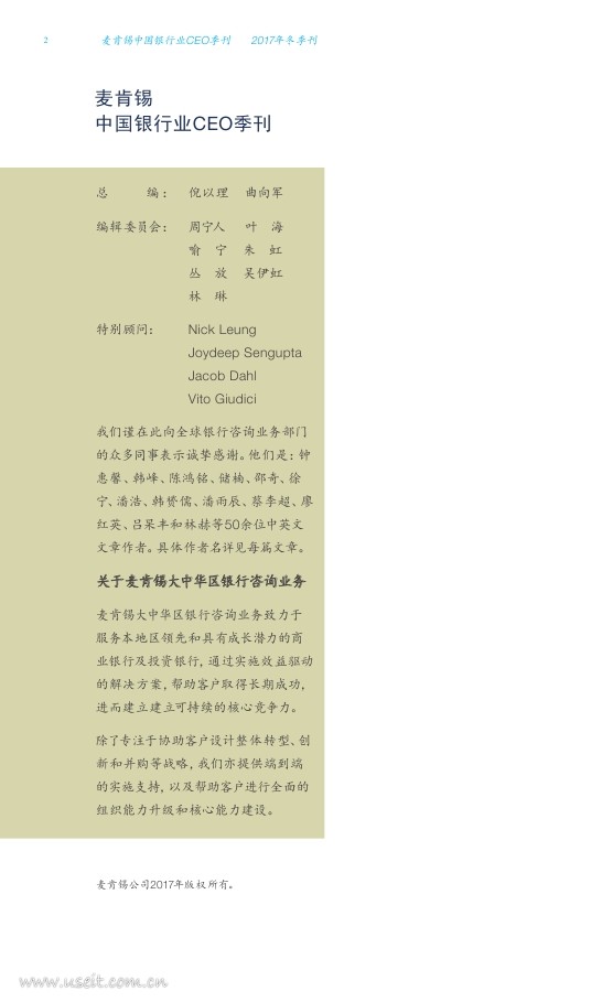麦肯锡:中国银行业CEO季刊(2017年冬季刊)极致客户体验,银行未来竞争的护城河.pdf