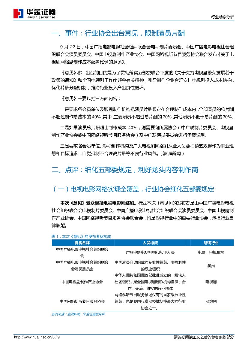 华金证券:传媒行业动态分析:电视剧行业限酬令发布,利好龙头内容制作商.pdf