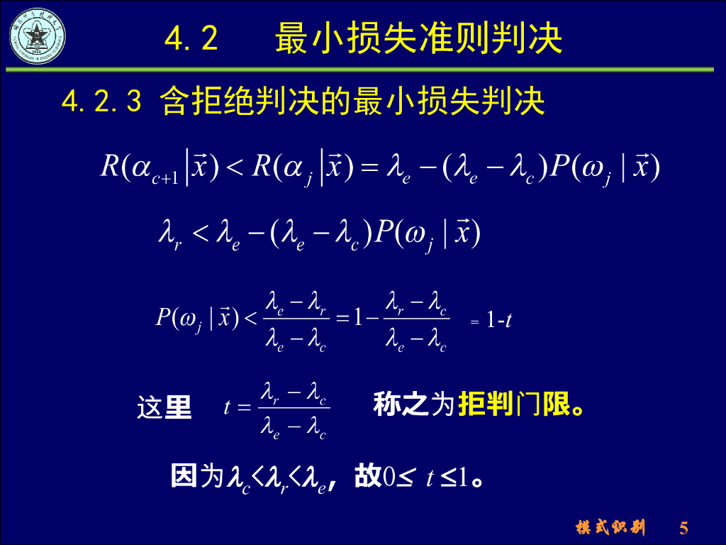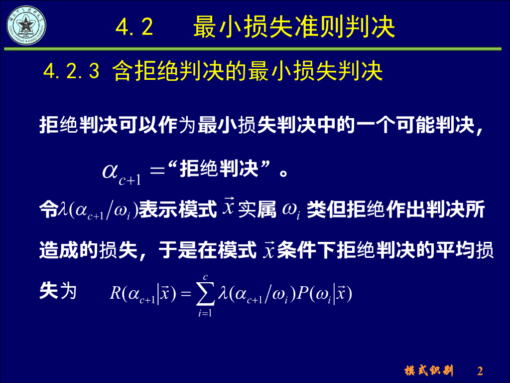 《模式识别》演示文稿-含拒绝判决的最小损失准则、最小最大损失准则.pdf