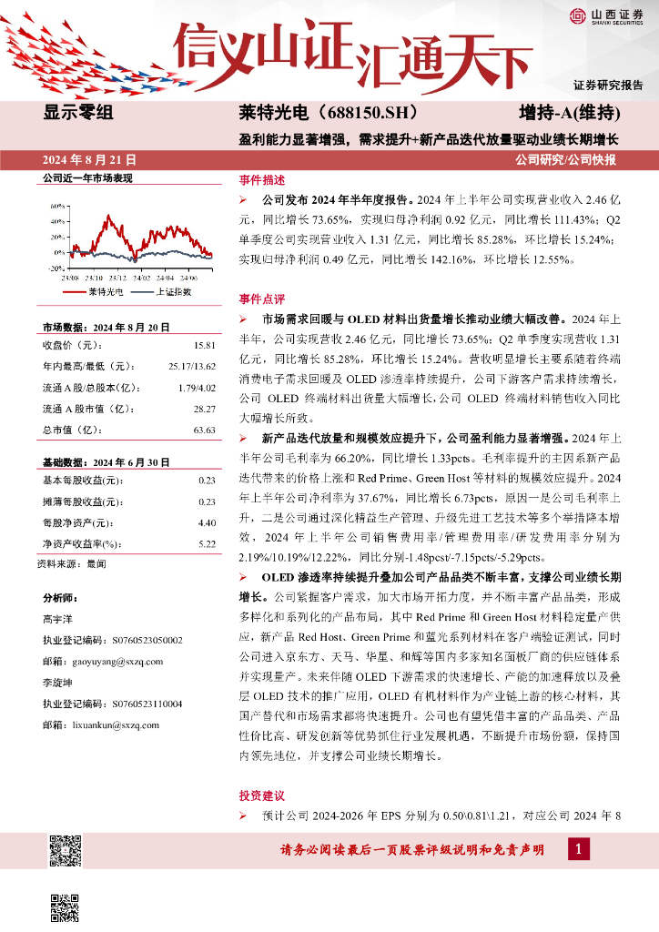 山西证券:莱特光电(688150)-盈利能力显著增强,需求提升+新产品迭代放量驱动业绩长期增长.pdf