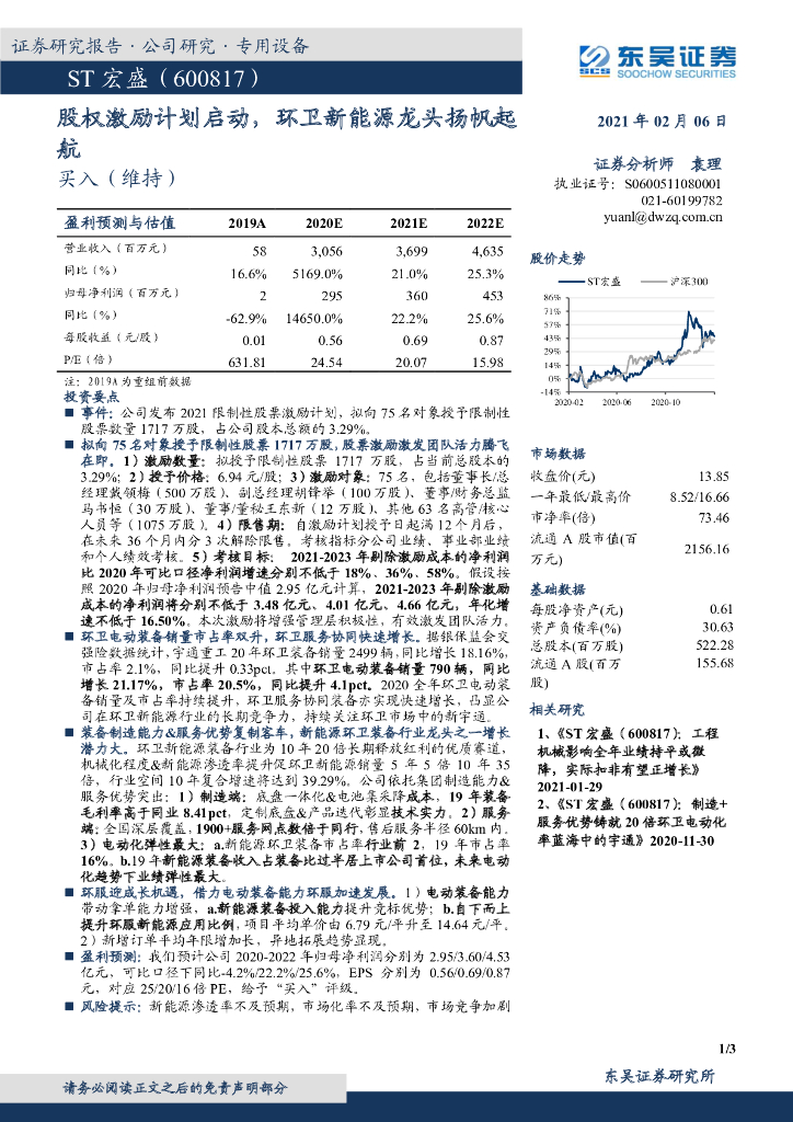 东吴证券:ST宏盛(600817)-股权激励计划启动,环卫新能源龙头扬帆航.pdf