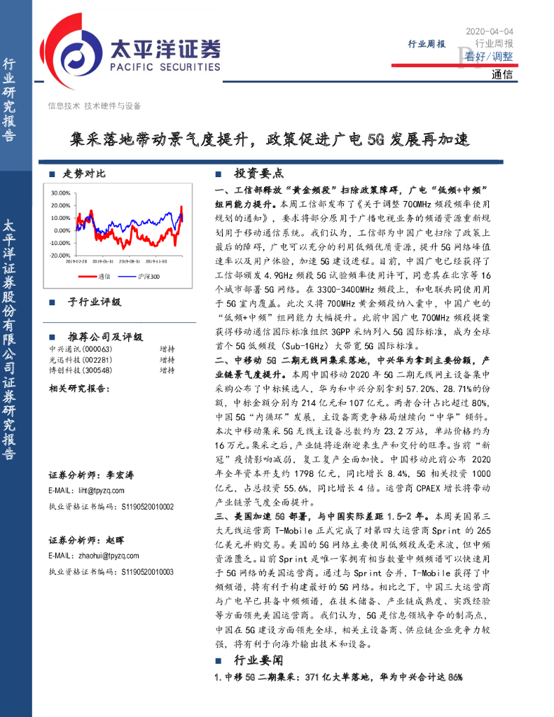 太平洋证券:通信行业周报:集采落地带动景气度提升,政策促进广电5G发展再加速.pdf