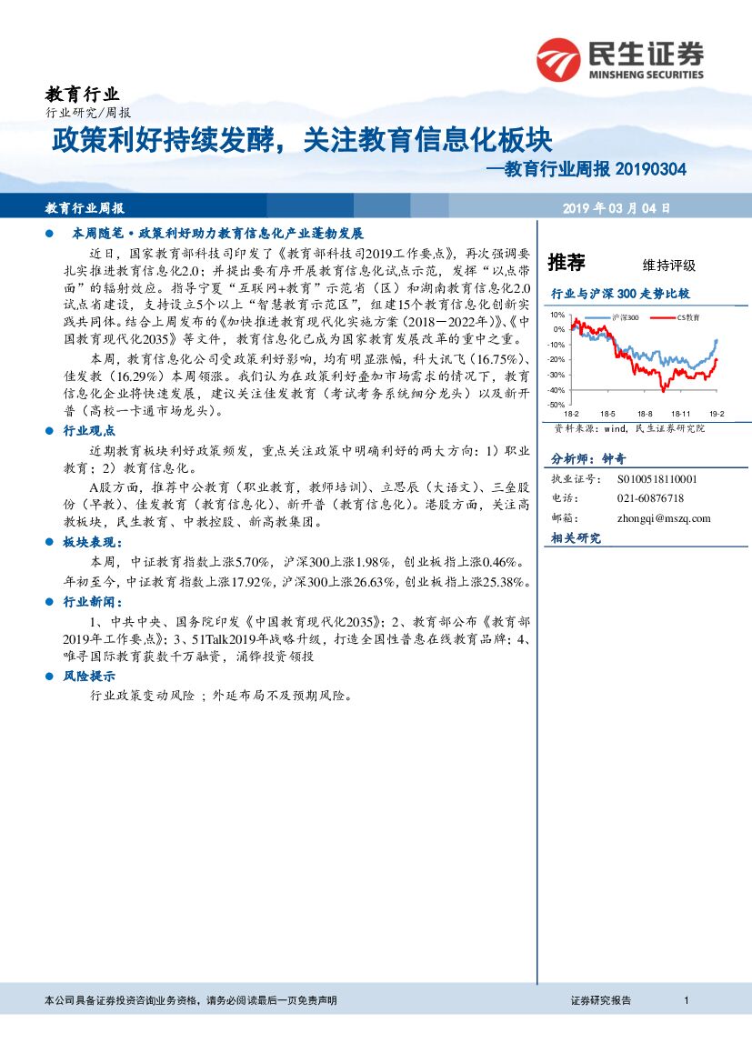 民生证券:教育行业周报:政策利好持续发酵,关注教育信息化板块.pdf