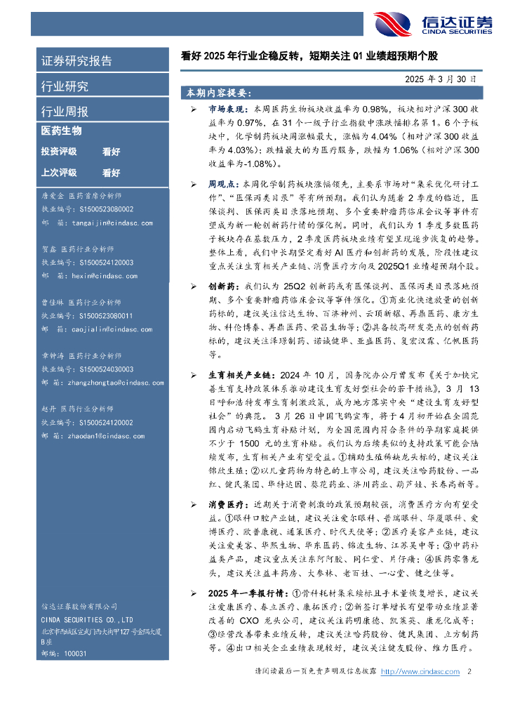 信达证券:医药生物行业周报:看好2025年行业企稳反转,短期关注Q1业绩超预期个股.pdf