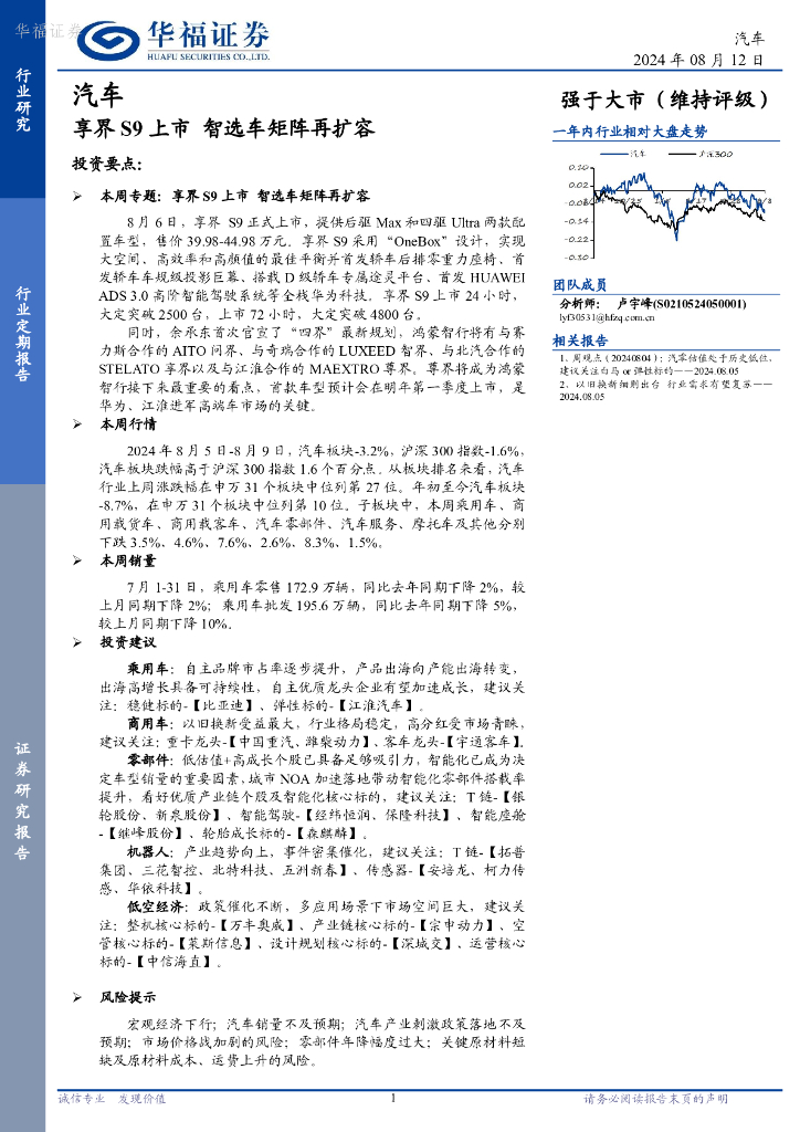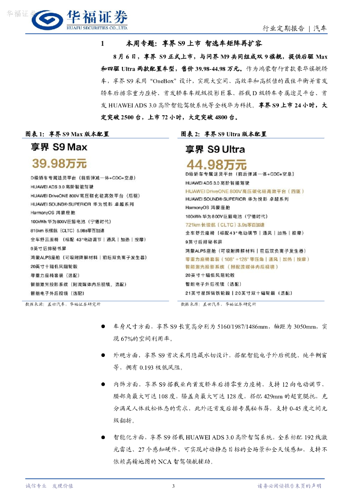 华福证券:汽车行业定期报告:享界S9上市,智选车矩阵再扩容.pdf