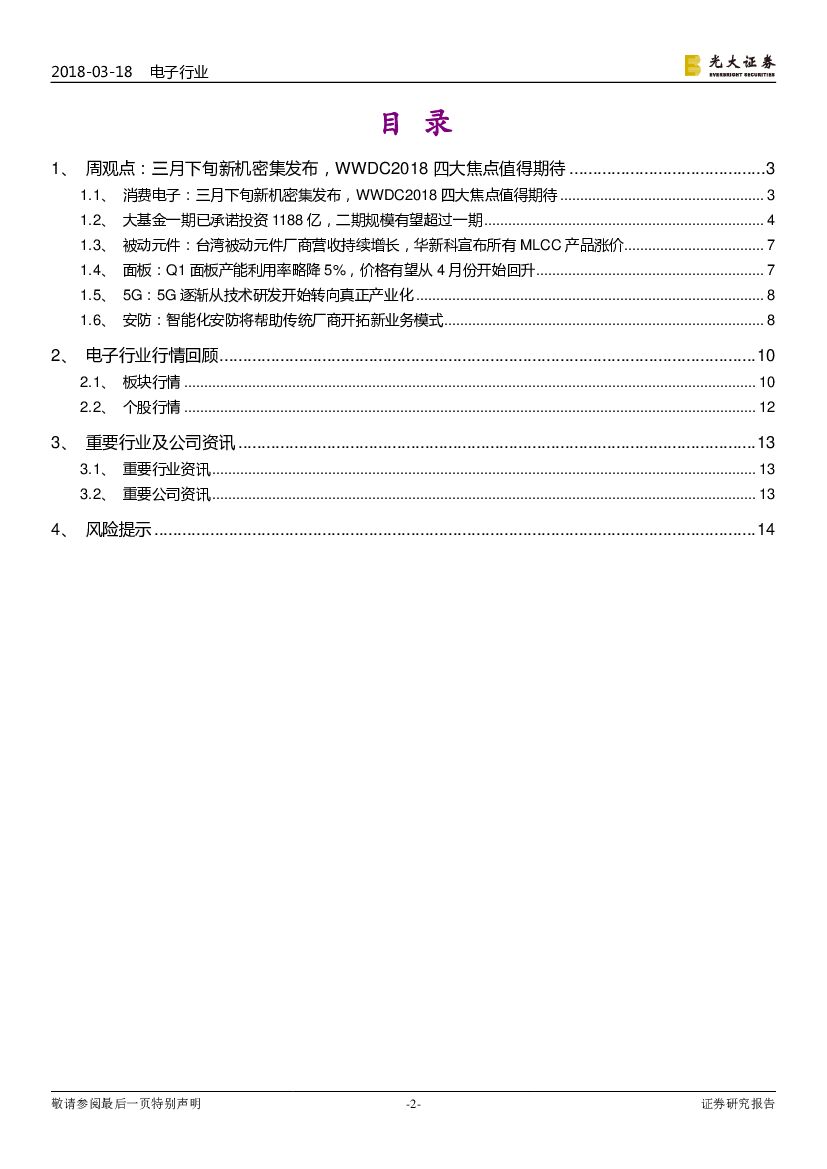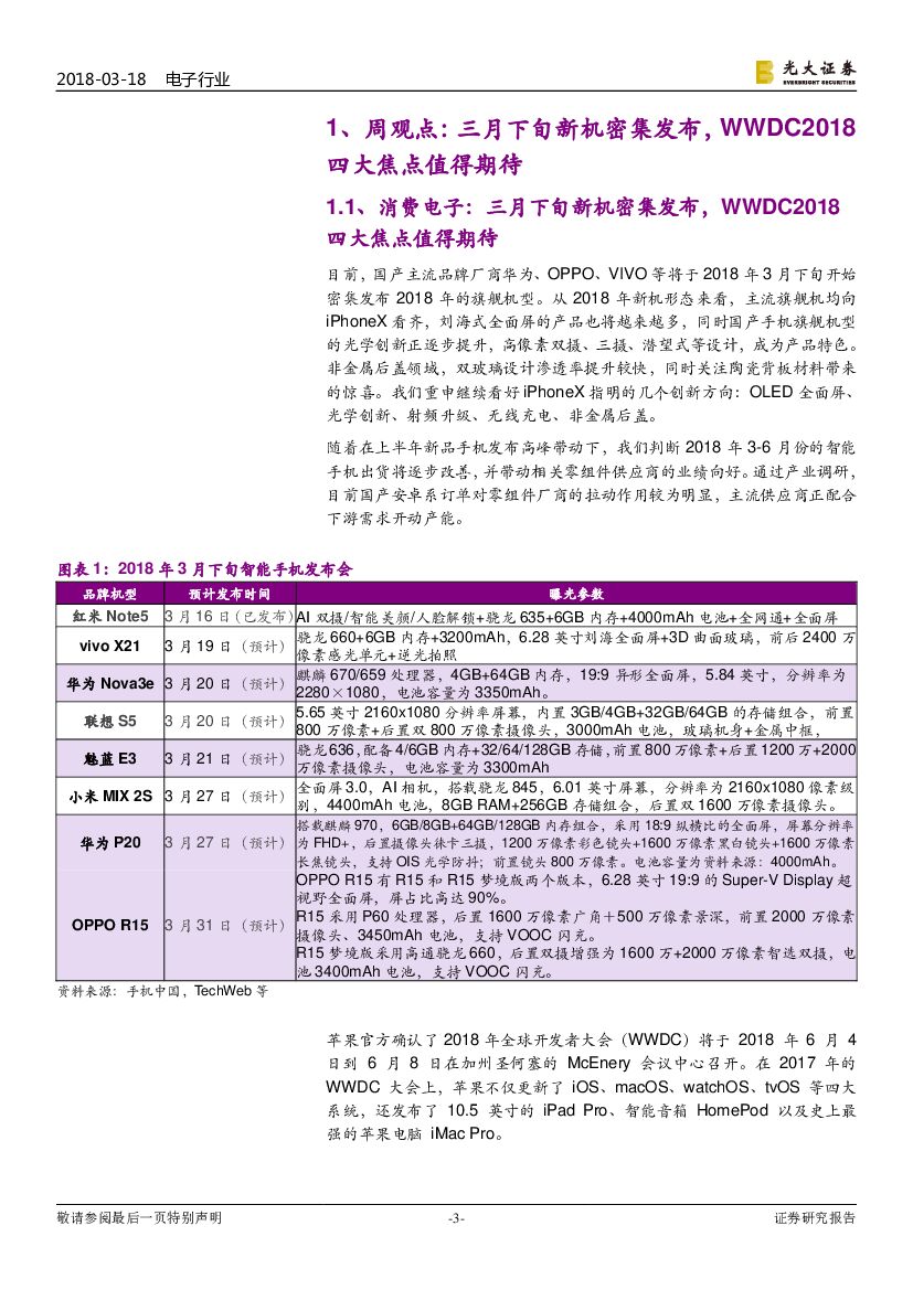 光大证券:电子行业周报:三月下旬新机密集发布,WWDC2018四大焦点值得期待.pdf