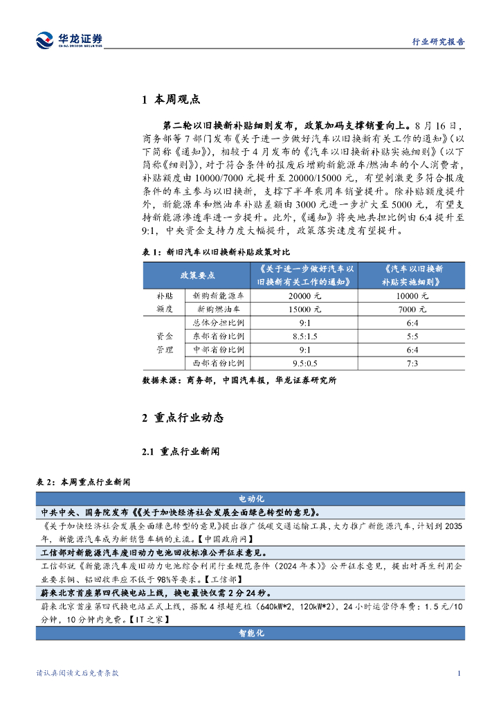 华龙证券:汽车行业周报:第二轮以旧换新补贴细则发布,政策加码支撑销量向上.pdf