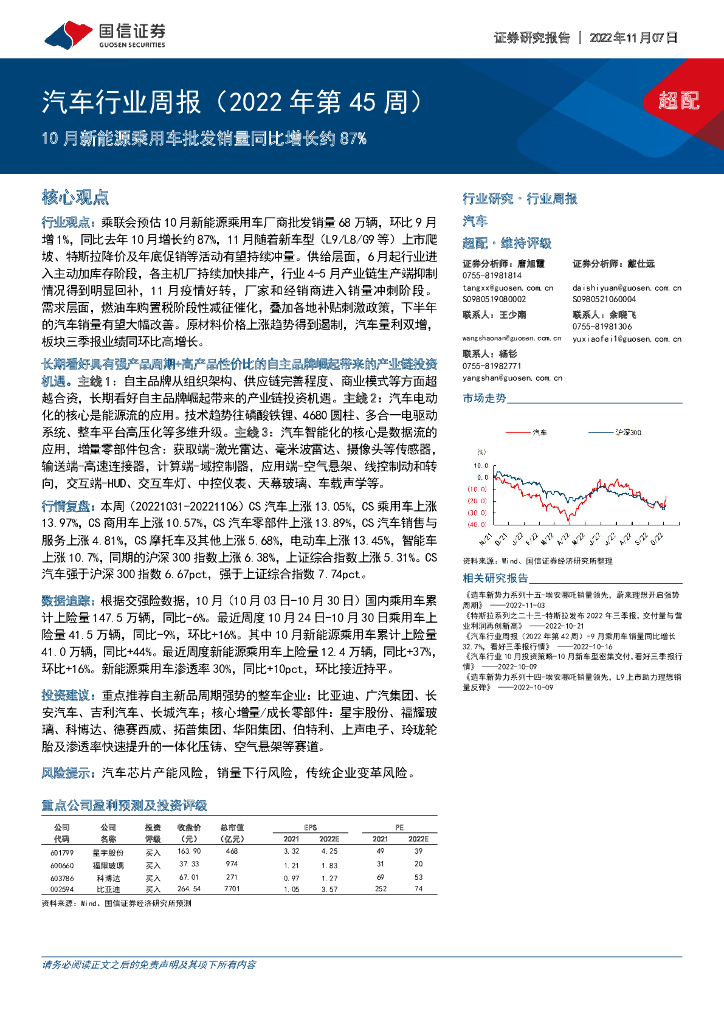 国信证券:汽车行业周报(2022年第45周):10月新能源乘用车批发销量同比增长约87%.pdf