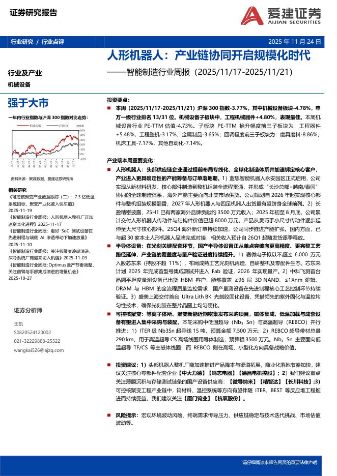 爱建证券:智能制造行业周报:人形机器人,产业链协同开启规模化时代.pdf