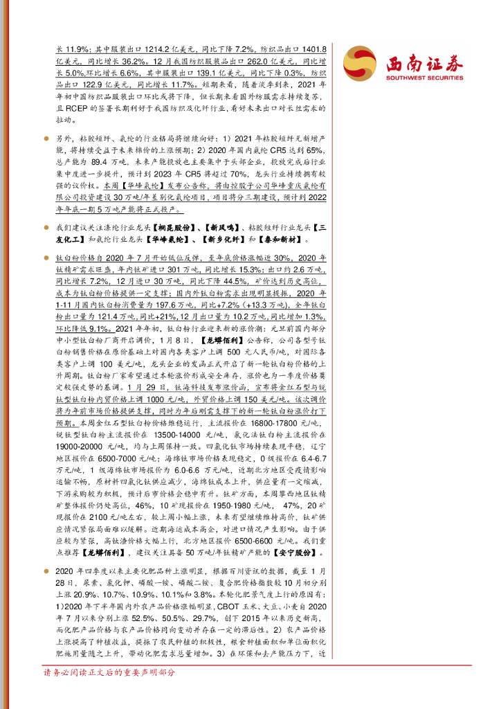 西南证券:化工行业周观点:钛白粉涨价函再现,建议关注化肥行情.pdf
