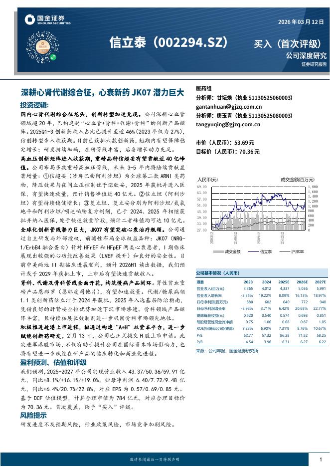 国金证券:信立泰(002294)-深耕心肾代谢综合征,心衰新药JK07潜力巨大.pdf