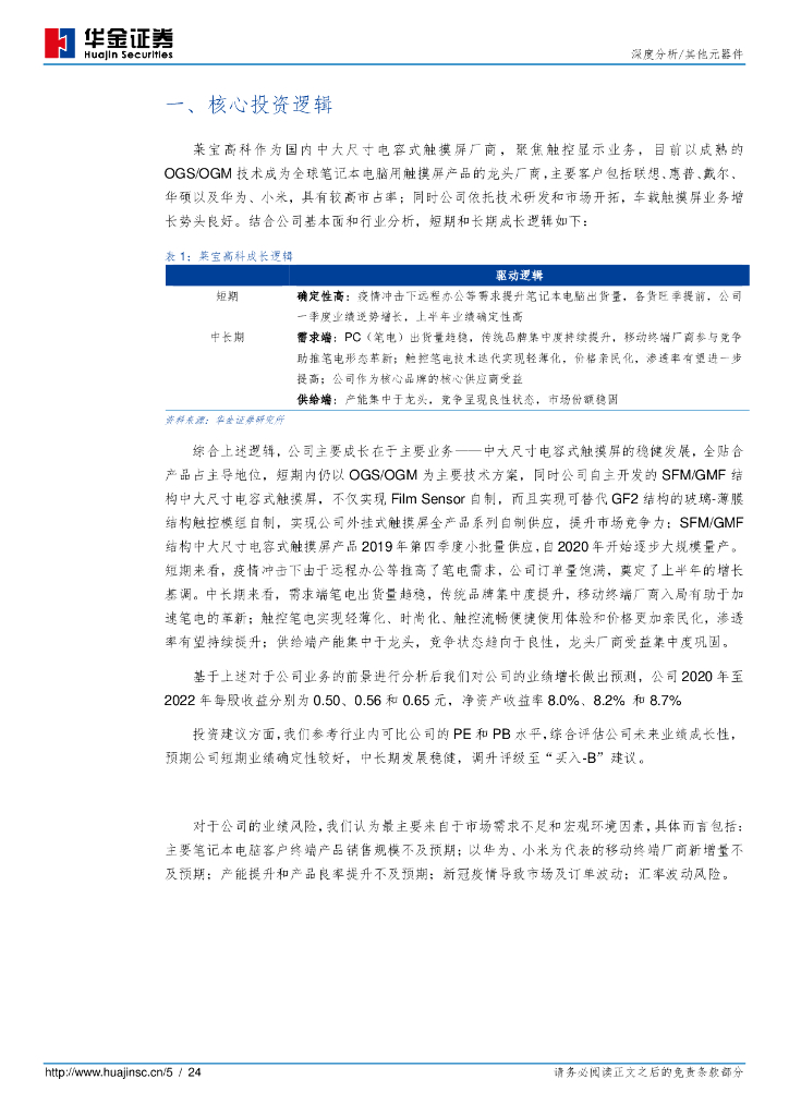 华金证券:莱宝高科(002106)-细分龙头短期确定性高,未来持续受益触控显示渗透率提升.pdf
