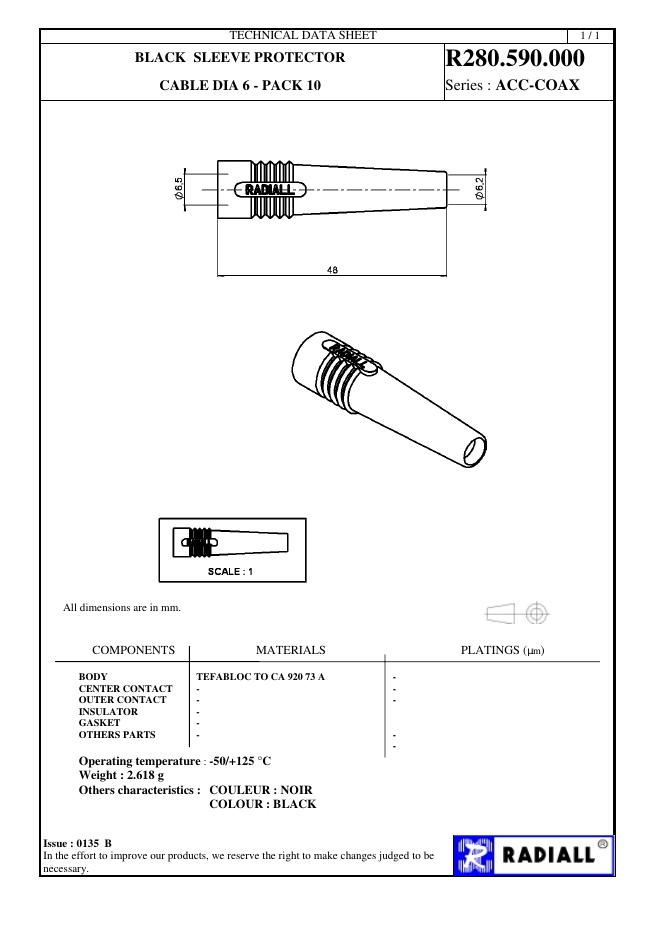 RADIALL BLACK SLEEVE PROTECTOR R280.590.000 CABLE DIA 6 - PACK 10 Series : ACC-COAX 数据手册.pdf