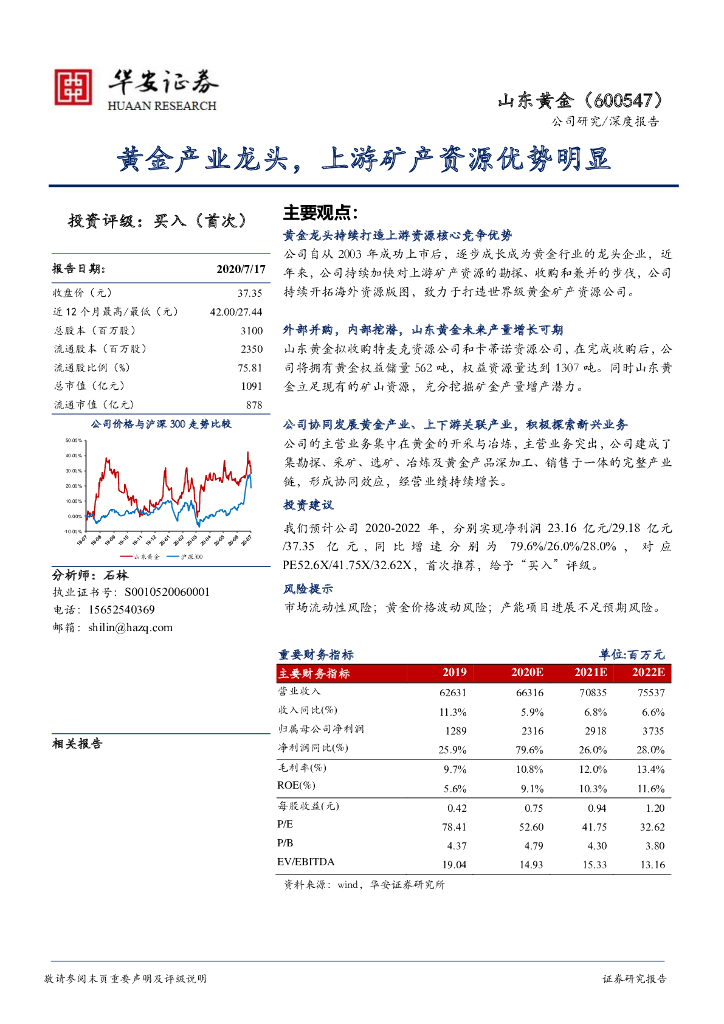 华安证券:山东黄金(600547)-黄金产业龙头,上游矿产资源优势明显.pdf