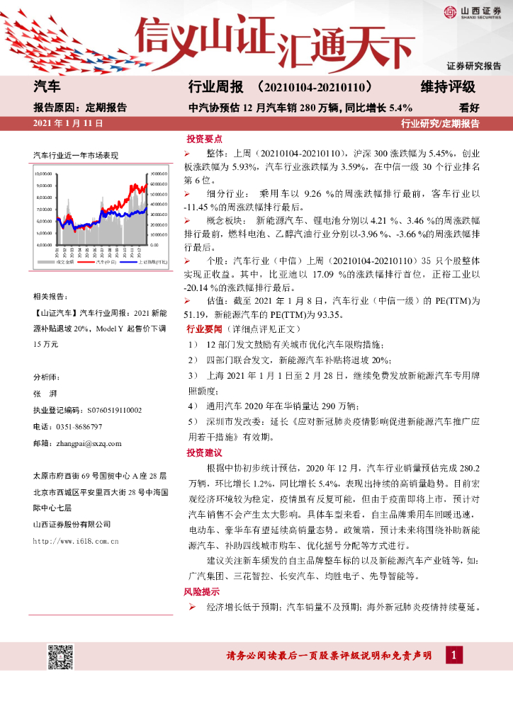 山西证券:汽车行业周报:中汽协预估12月汽车销280万辆,同比增长5.4%.pdf