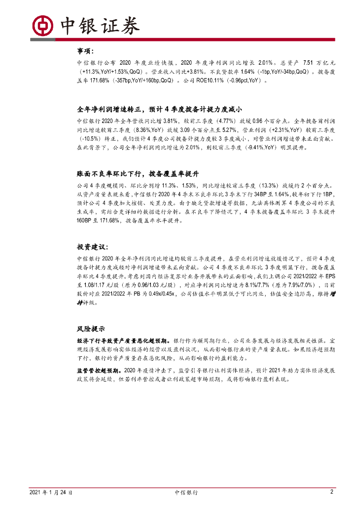 中银证券:中信银行(601998)-4季度不良率环比下行,营收增速小幅放缓.pdf