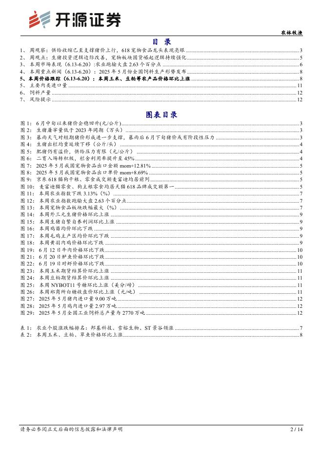 开源证券:农林牧渔行业周报:供给收缩已至支撑猪价上行,618宠物食品龙头表现亮眼.pdf