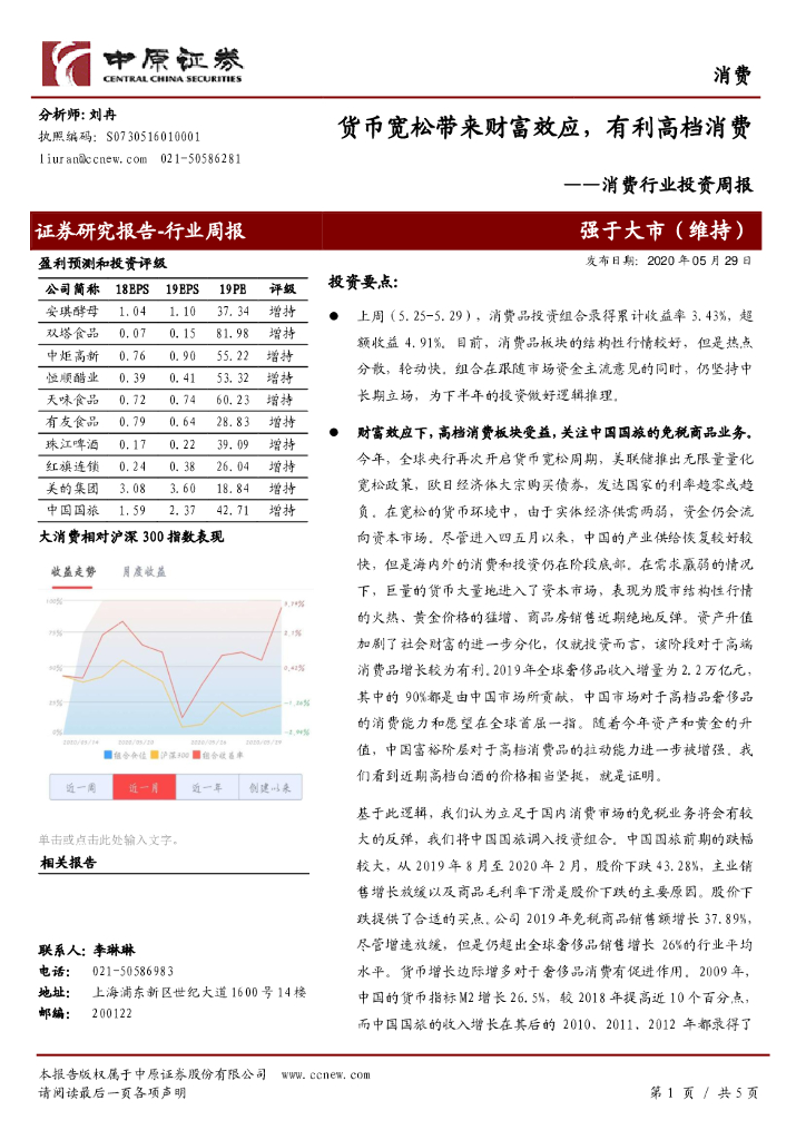 中原证券:消费行业投资周报:货币宽松带来财富效应,有利高档消费.pdf