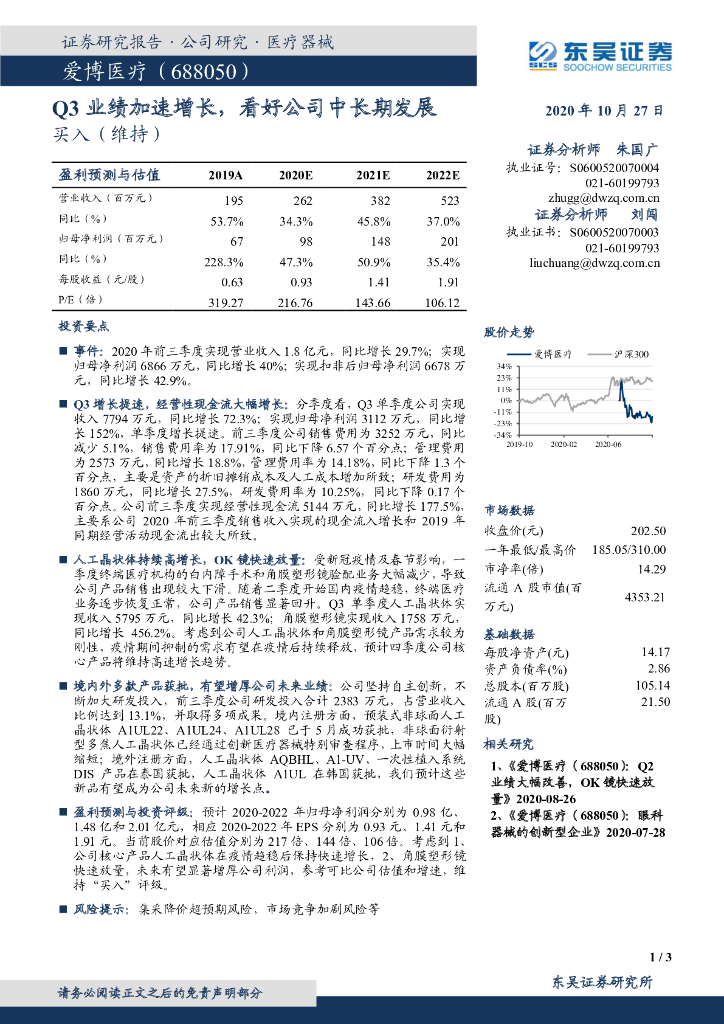 东吴证券:爱博医疗(688050)-Q3业绩加速增长,看好公司中长期发展.pdf