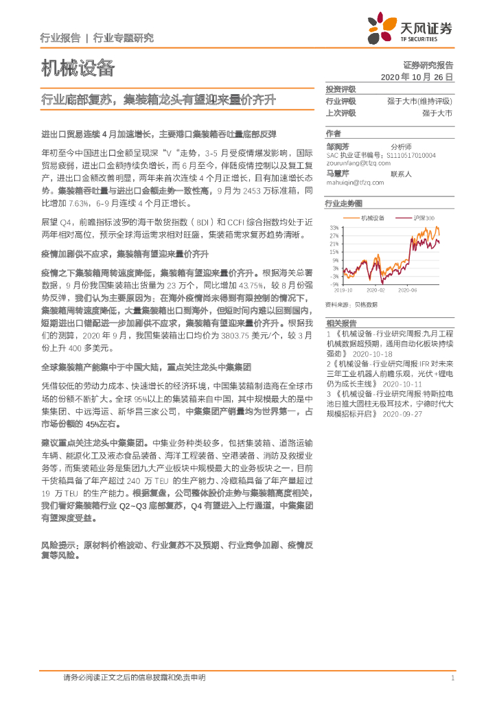 天风证券:机械设备行业专题研究:行业底部复苏,集装箱龙头有望迎来量价齐升.pdf