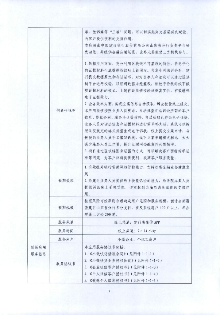 金融科技创新应用声明书:基于区块链技术的普惠贷款诉讼存证服务.pdf