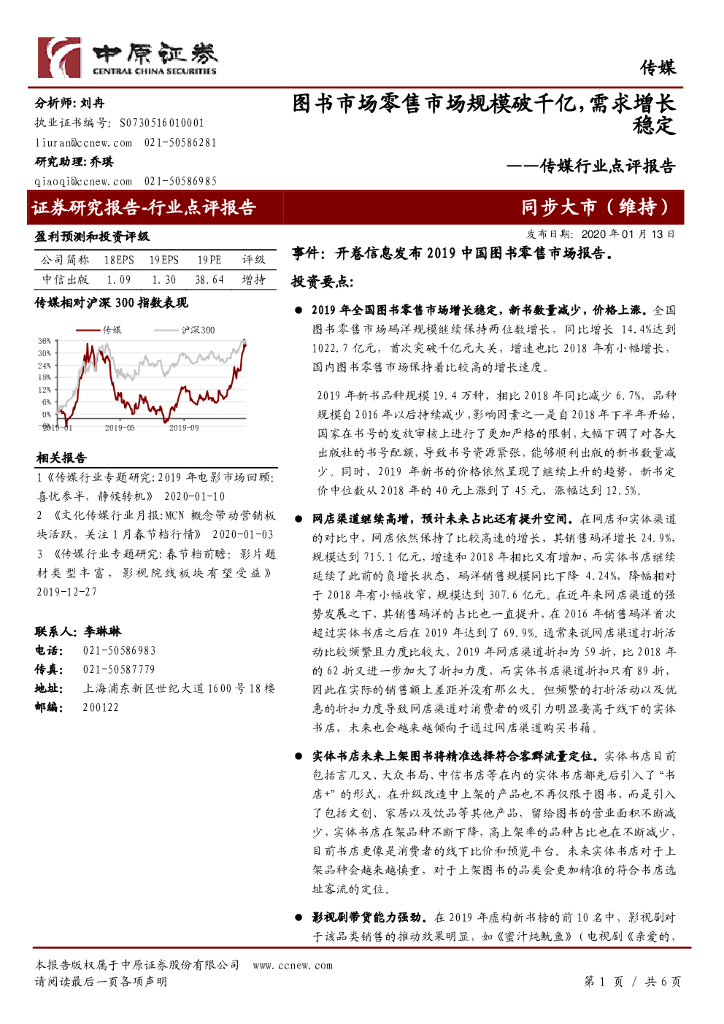 中原证券:传媒行业点评报告:图书市场零售市场规模破千亿,需求增长稳定.pdf