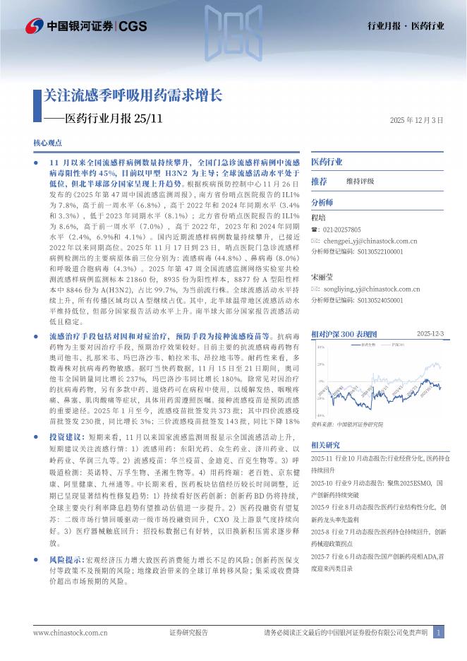 中国银河:医药行业月报25/11:关注流感季呼吸用药需求增长.pdf