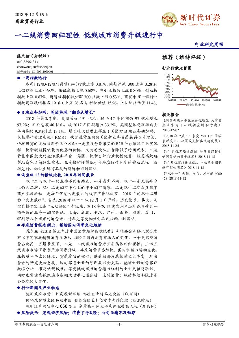 新时代证券:商业贸易行业周报:一二线消费回归理性 低线城市消费升级进行中.pdf