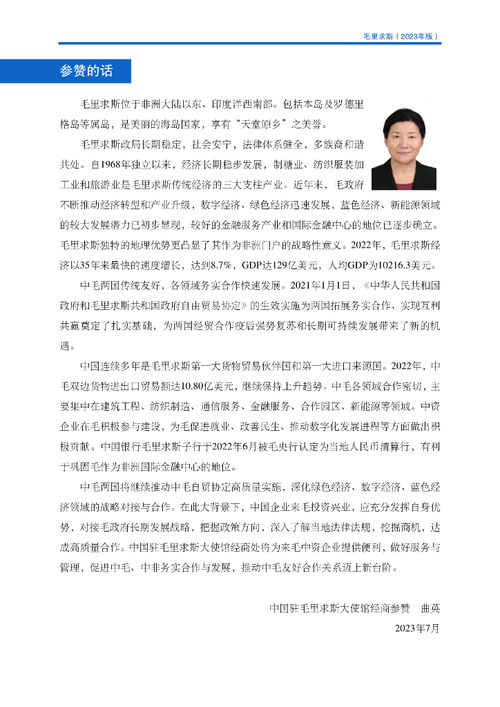 商务部:对外投资合作国别(地区)指南:毛里求斯(2023年版).pdf