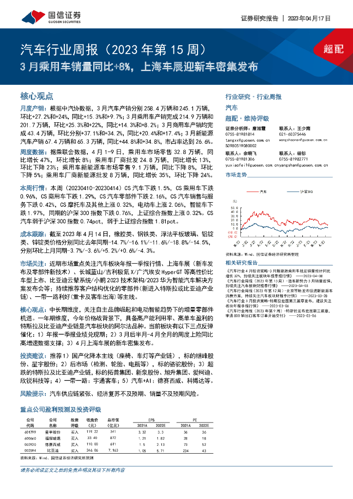 国信证券:汽车行业周报(2023年第15周):3月乘用车销量同比+8%,上海车展迎新车密集发布.pdf