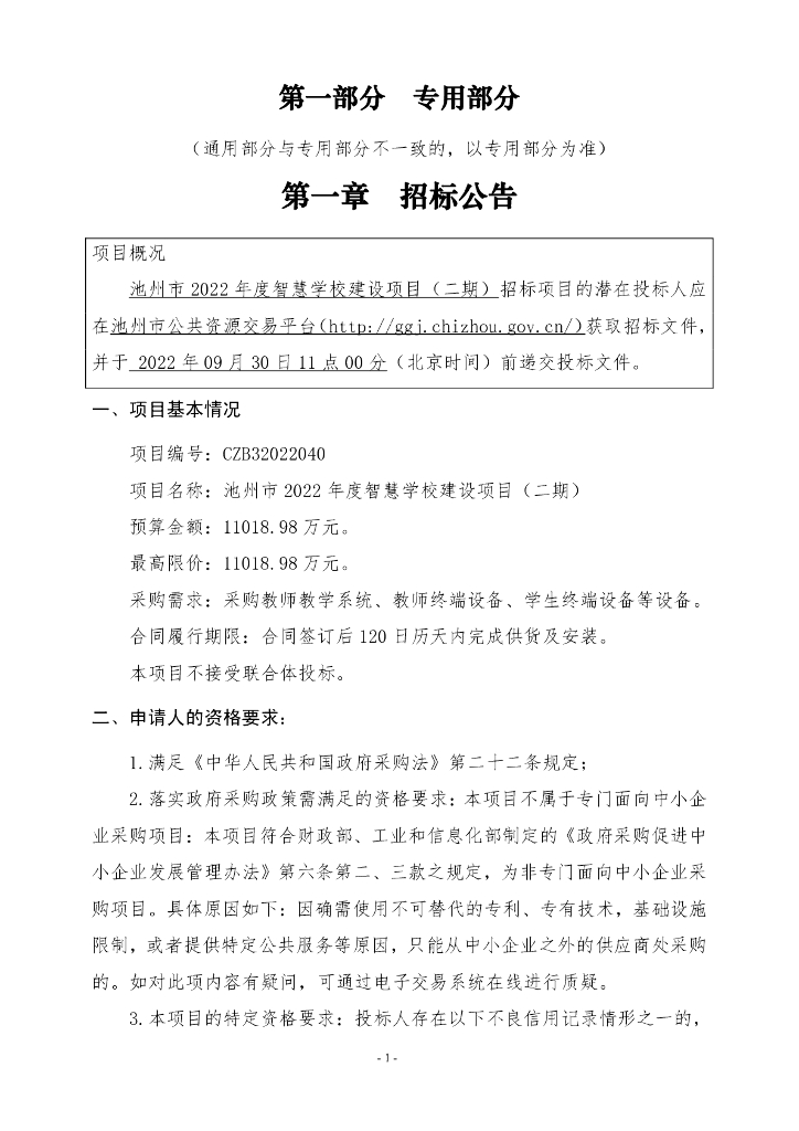 池州市2022年度智慧学校建设项目(二期) 采购文件.pdf
