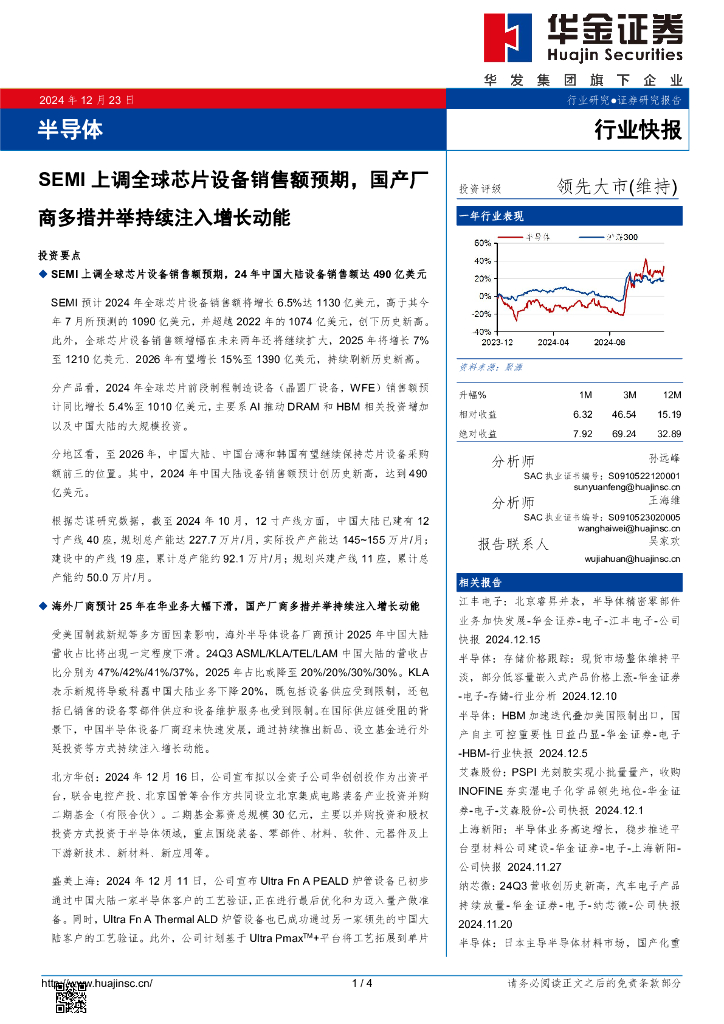 华金证券:半导体:SEMI上调全球芯片设备销售额预期,国产厂商多措并举持续注入增长动能.pdf