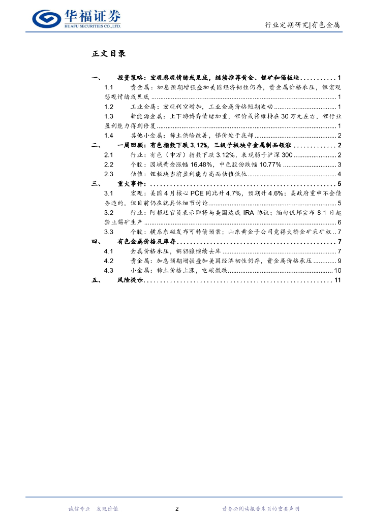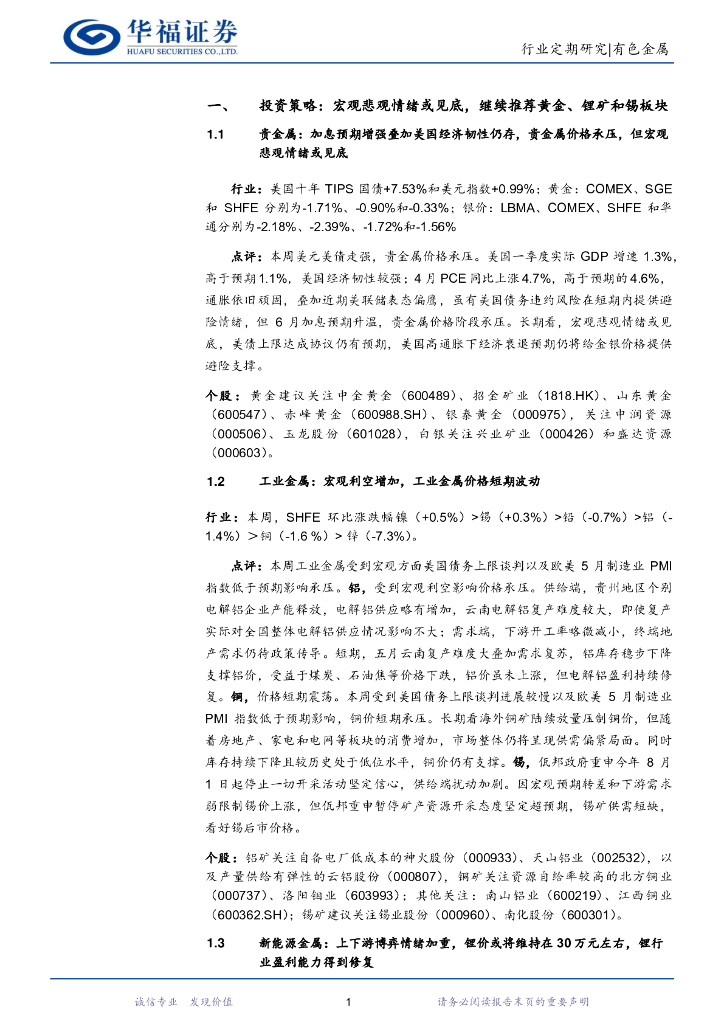 华福证券:有色金属行业周报:宏观悲观情绪或见底,继续推荐黄金、锂矿和锡板块.pdf