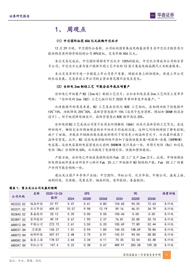 华鑫证券:半导体行业周报:中芯国际拟花406亿元收购中芯北方,台积电开始量产2nm芯片.pdf