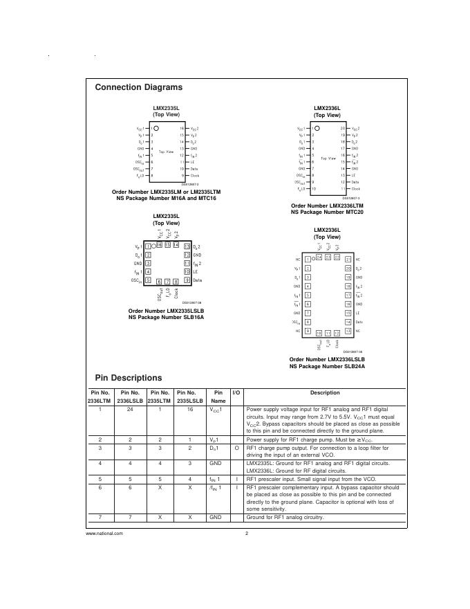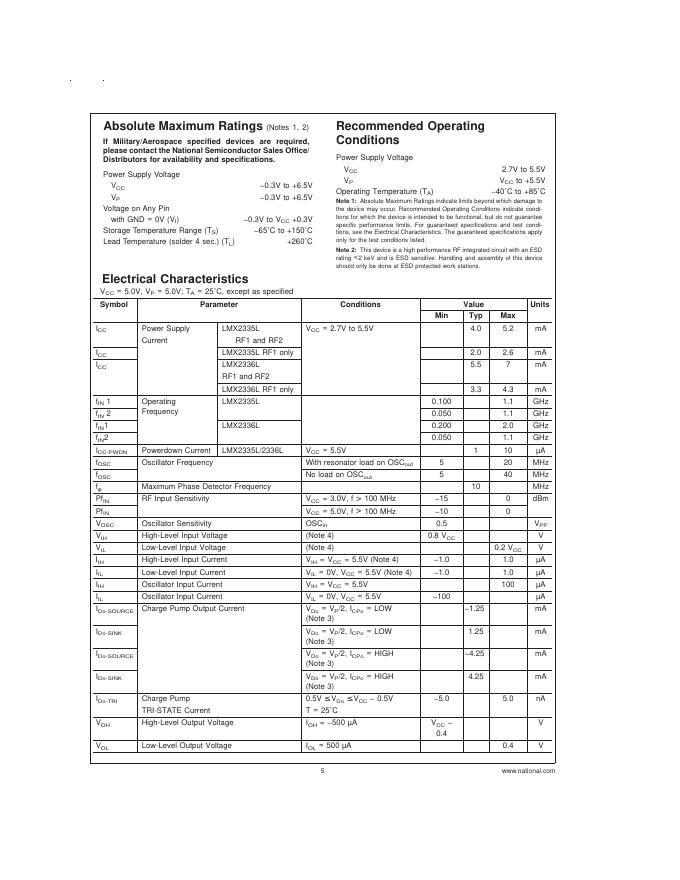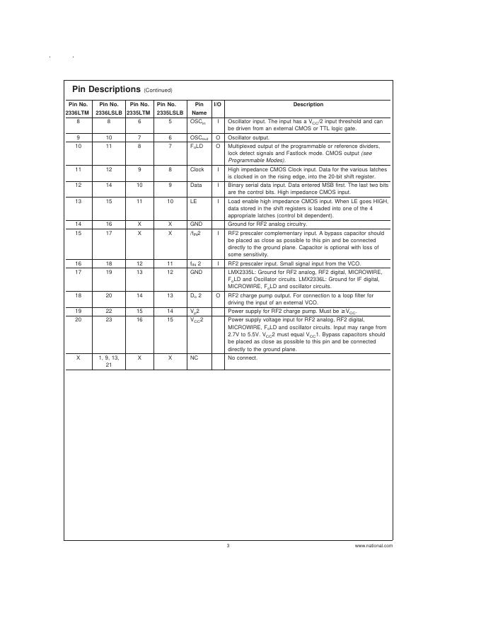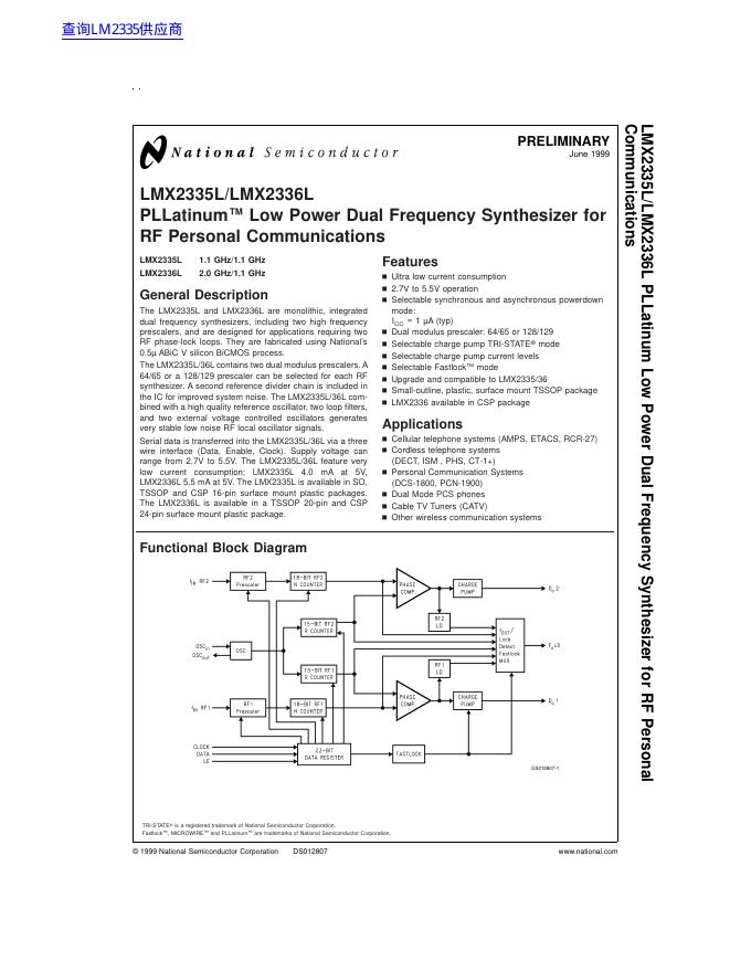 National Semiconductor LMX2335L/LMX2336L PLLatinum™ Low Power Dual Frequency Synthesizer for RF Personal Communications 数据手册.pdf