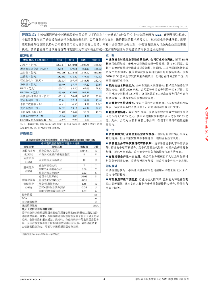 中诚信:中兴通讯股份有限公司2021年度信用评级报告.pdf