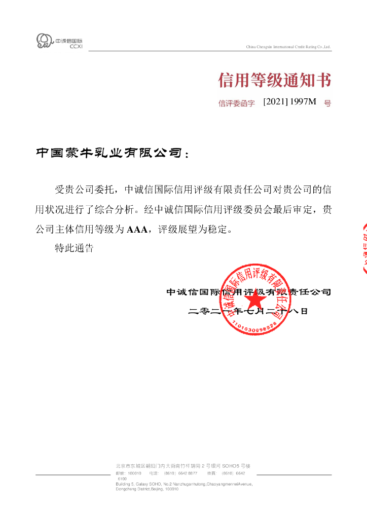 中诚信:中国蒙牛乳业有限公司主体信用评级报告及跟踪评级安排.pdf