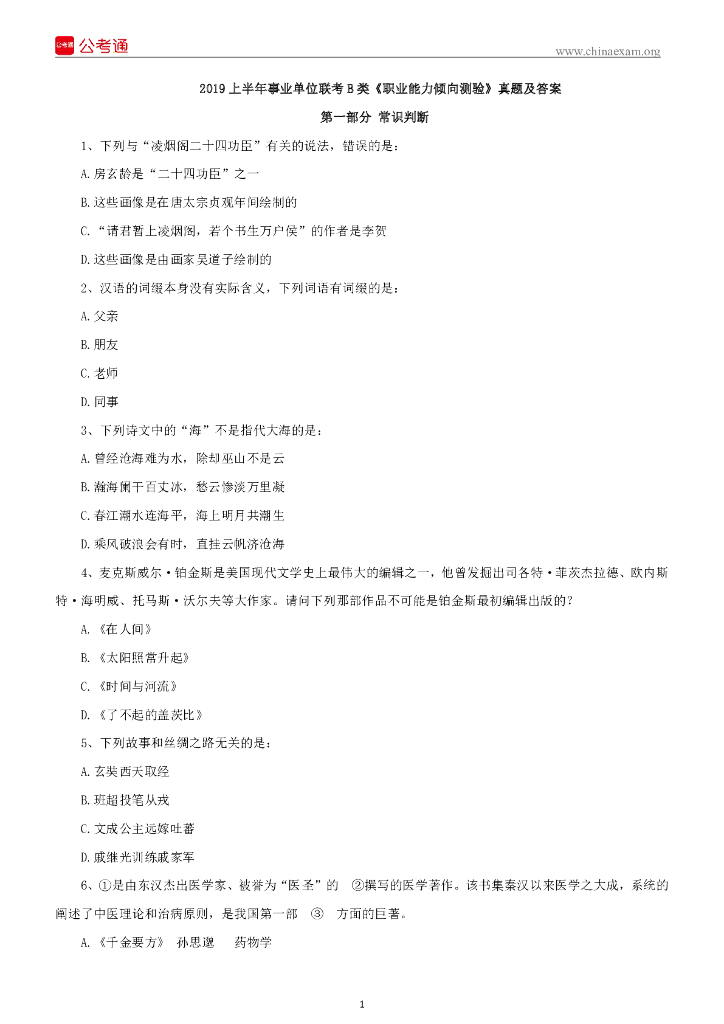 2019上半年事业单位联考《职业能力倾向测验》B类真题及答案.pdf
