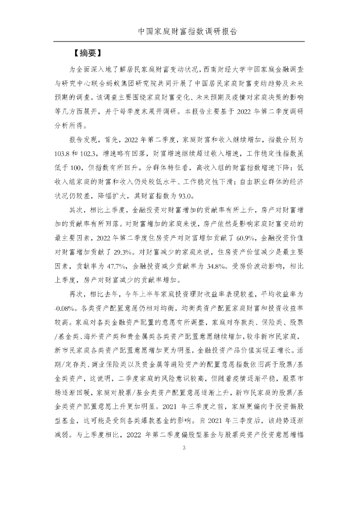 西南财经大学&蚂蚁金服:疫情下中国家庭的财富变动趋势—中国家庭财富指数调研报告(2022Q2).pdf