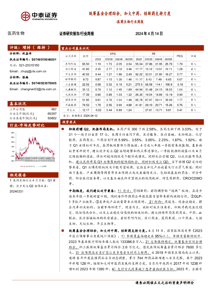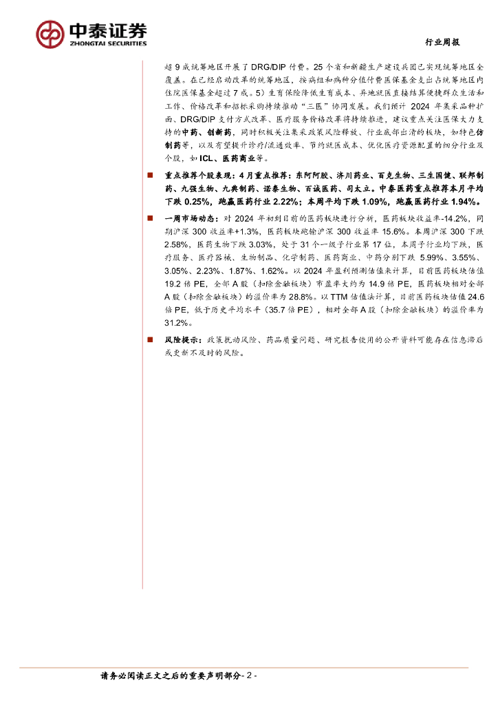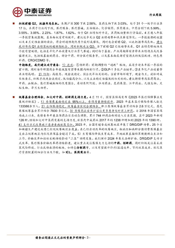 中泰证券:医药生物行业周报:统筹基金合理结余,加大中药、创新药支持力度.pdf