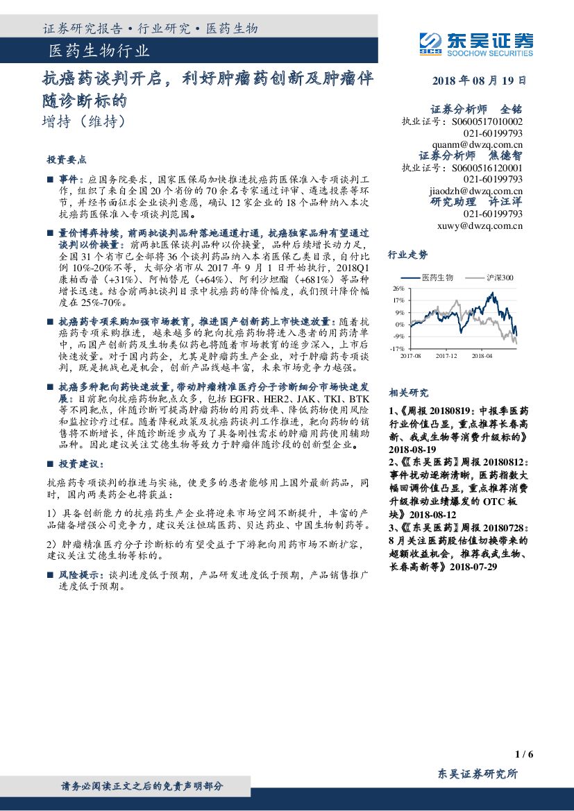 东吴证券:医药生物行业研究:抗癌药谈判开启,利好肿瘤药创新及肿瘤伴随诊断标的.pdf