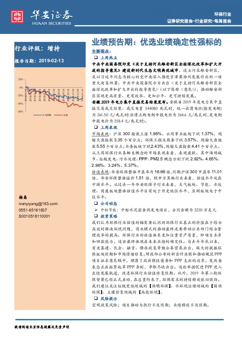 华安证券:环保行业每周报告:业绩预告期:优选业绩确定性强标的.pdf