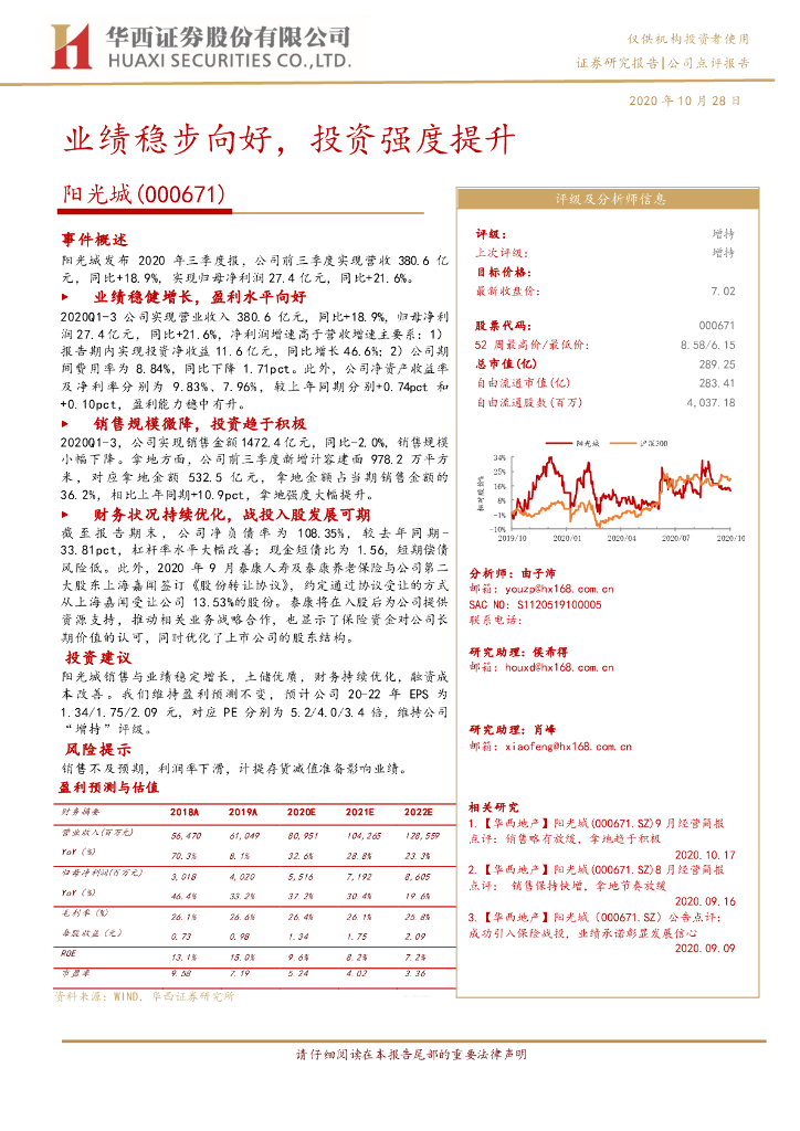 华西证券:阳光城(000671)-业绩稳步向好,投资强度提升.pdf