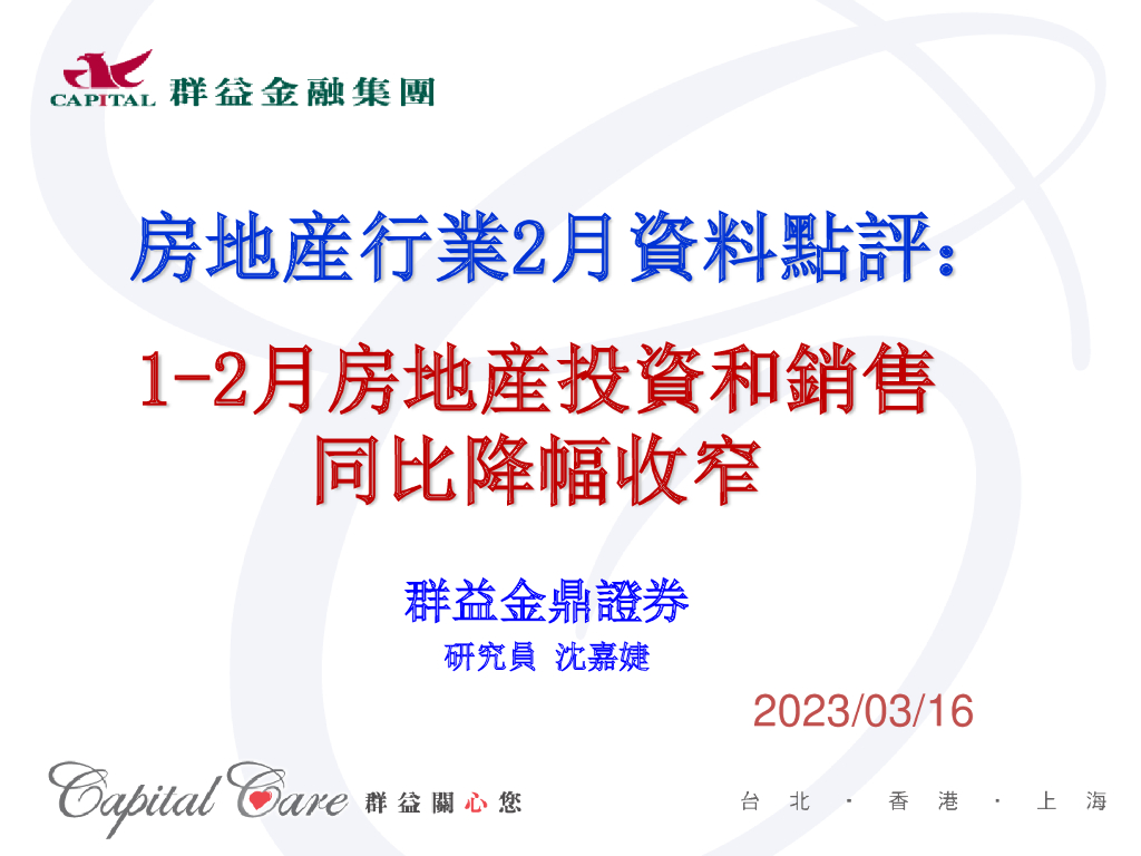 群益证券:房地产行业2月资料点评:1-2月房地产投资和销售同比降幅收窄.pdf