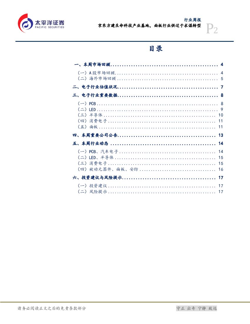 太平洋证券:电子设备、仪器和元件行业周报:京东方建生命科技产业基地,面板行业供过于求谋转型.pdf