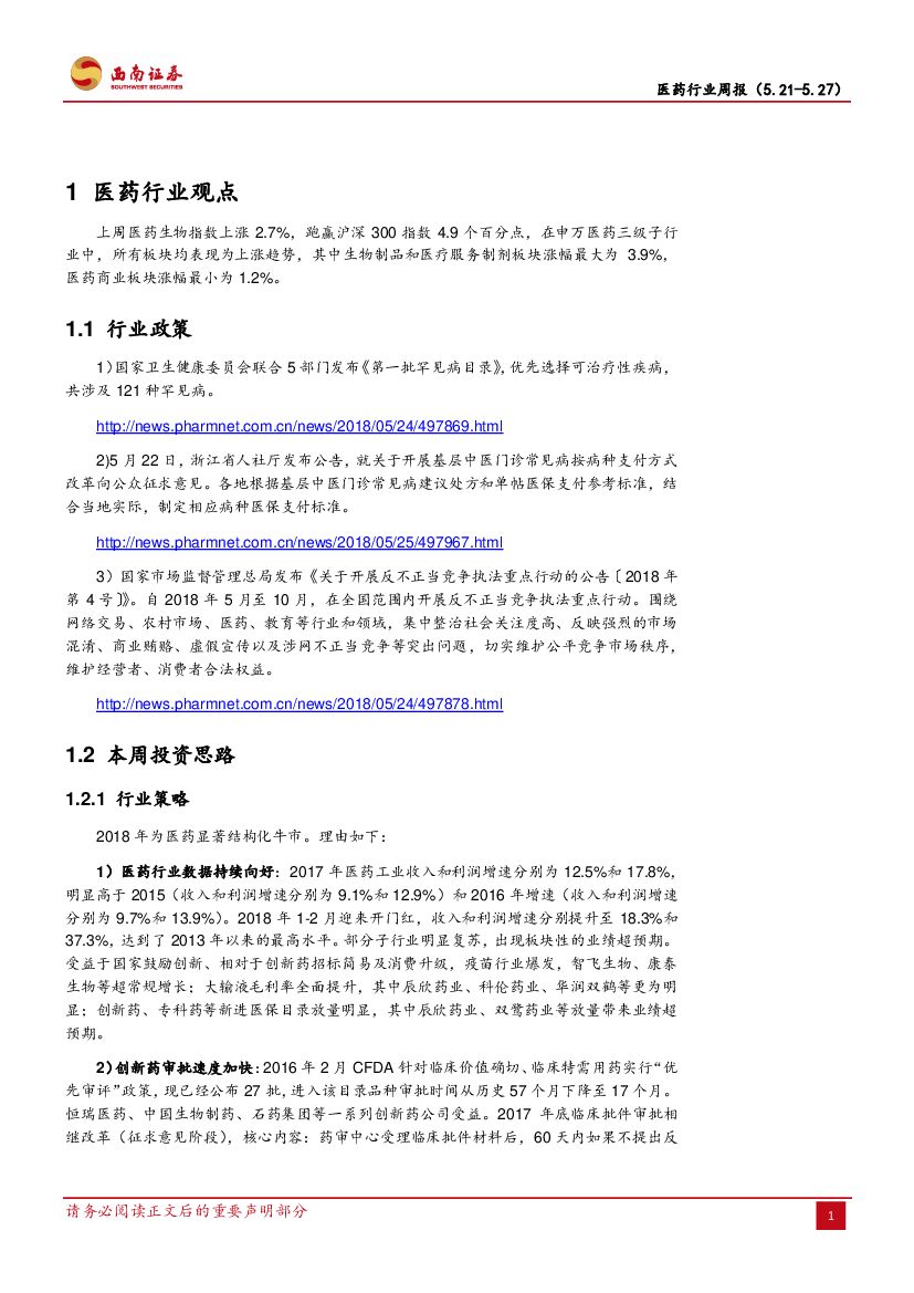 西南证券:医药行业周报:看好医药板块,持续推荐疫苗板块及蓝帆医疗.pdf