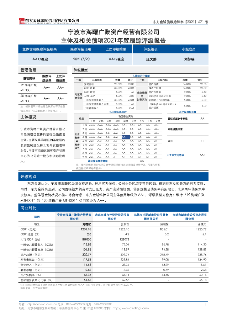 东方金诚:宁波市海曙广聚资产经营有限公司主体及相关债项2021年度跟踪评级报告.pdf